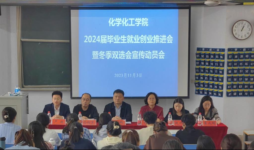 在教四101召开2024届毕业生就业创业推进会暨冬季双选会宣传动员会。学院党委书记郭鹏、副书记曲剧,辅导员冷向宇、赵方方、严赫、翟成辉出席会议,2024届毕业生代表参加。