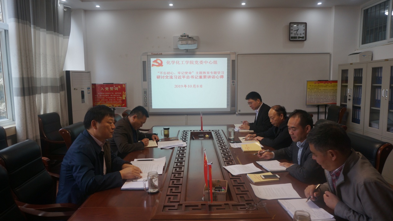 10月8日,学院分党委理论中心组在实验楼“党员之家”集体学习研讨习近平总书记在庆祝中华人民共和国成立70周年大会上的讲话精神。分党委书记郭鹏主持学习并讲话,中心组成员井强山、归风铁、骆定法、刘鹏、吴志伟参加学习并交流心得体会。