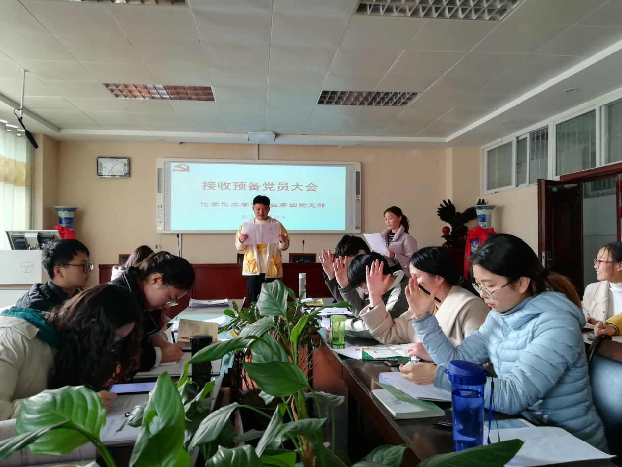 学生第四党支部在实验楼407会议室召开预备党员接收支部大会。第四党支部王露洁同志主持本次会议。
