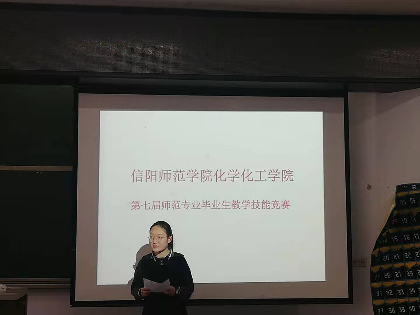 在教4-T1举办2021届师范类毕业生教学技能大赛初赛。党委书记郭鹏、副院长骆定法、化学学科教学专业教师沈久明等领导老师莅临观摩并担任评委。