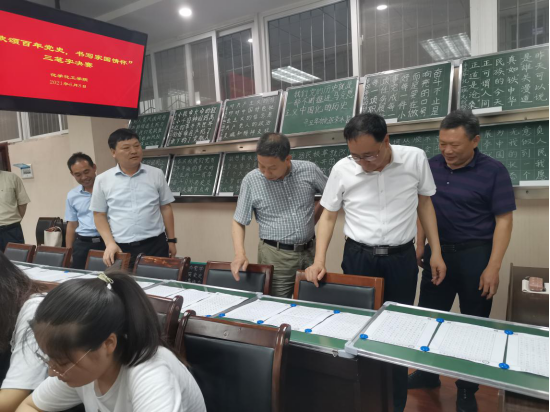 在比赛现场,成人小说 党委书记郭鹏、院长井强山介绍了比赛开展情况,比赛包括钢笔字、毛笔字、粉笔字三种形式,以书写“习近平总书记重要讲话、庆祝建党100周年宣传标语、党史故事”等为主要内容,比赛旨在增强党史学习教育的针对性和有效性,进一步切实提高师范专业学生的师范技能。