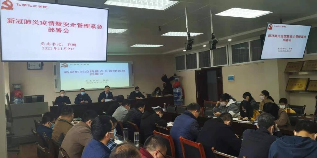 在学院会议室召开疫情防控工作专题部署会。学院党委书记郭鹏、副书记曲剧,副院长曹俊涛、王红军、于永生,全体教师自觉佩戴口罩全程参加会议。会议由郭鹏主持。