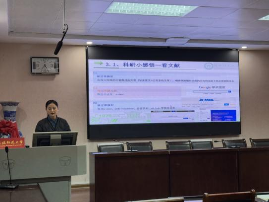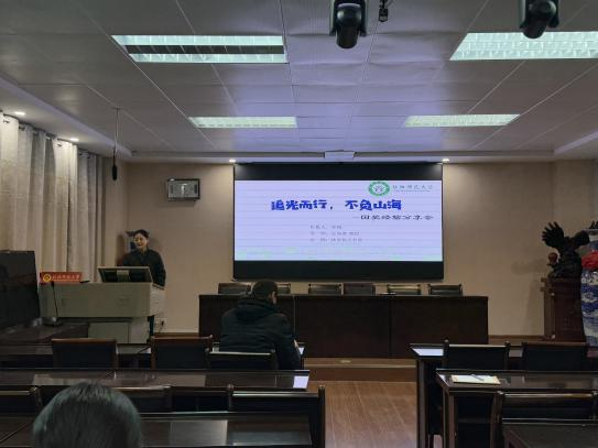 最后,学院组织开展了榜样示范分享会。23级研究生孙露同学作为主讲人,围绕个人成长历程与国奖申报经验展开分享,条理清晰地讲述了自己在科研学习中明确目标、高效规划、攻坚克难的心得,为在场同学传递了实用且可借鉴的成长思路。