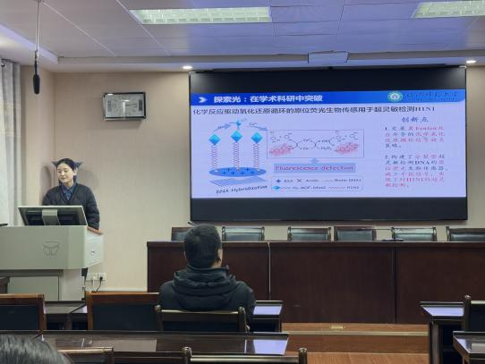 随后,学院于化学楼407会议室开展“学术明星”评选活动。活动吸引了各年级研究生积极报名、同台竞技,其中23级研究生孙露同学表现尤为亮眼,她生动分享了自己的科研历程与阶段性成果,潜心钻研、勇于探索的科研精神感染了在场每一个人。经综合评定,孙露同学成功斩获学院“学术明星”称号,并将代表学院参加校级评选。