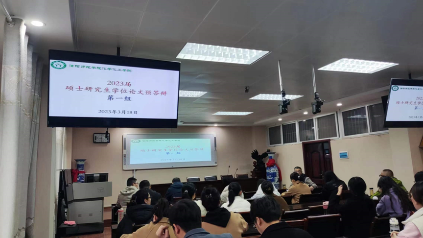 在化学楼407会议室举行2023届硕士研究生学位论文预答辩。根据研究方向,本次预答辩分3个小组进行,刘彦明、井强山、郭鹏、刘德汞、刘鹏、曹俊涛、王红军等导师代表作为答辩专家参加了本次预答辩汇报会。