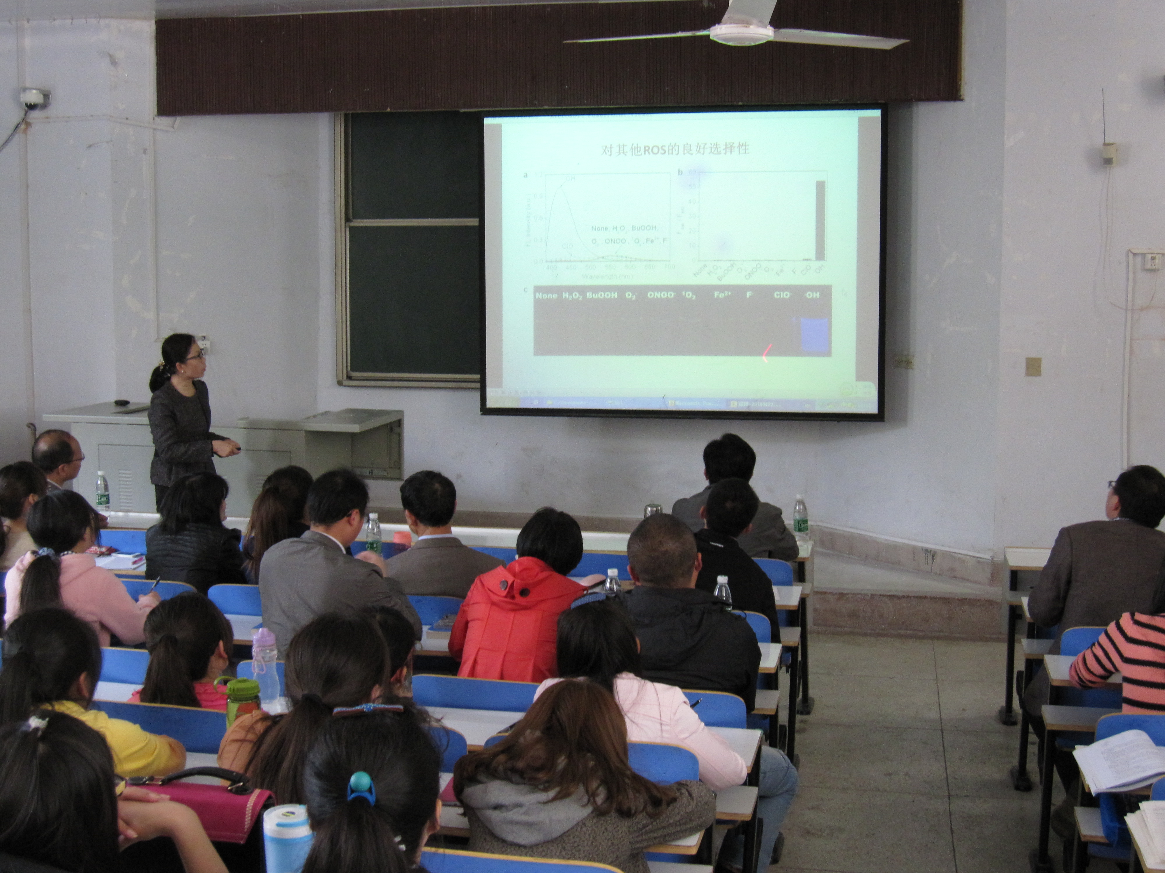 易涛教授首先介绍了响应型分子功能性材料的研究背景,从动力学驱动、热力学可逆开始,讲述了分子敏感材料及对外界刺激的响应能力,重点结合自己的科学研究,从比度荧光探针检测ROS和DNA、荧光开关材料用于活细胞成像和超分子凝胶材料用于可视化检测三个方面,讲授了响应型探针材料及生物成像,易教授精彩的报告赢得了师生的阵阵掌声。会后,易涛教授与成人小说