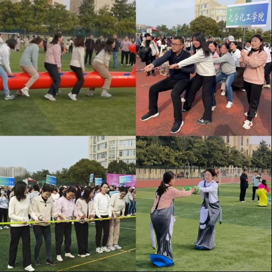 女教职工积极报名参加,学院党委书记、分工会主席郭鹏和全体女同胞、部分男教职工一起到趣味运动会现场为大家加油喝彩。