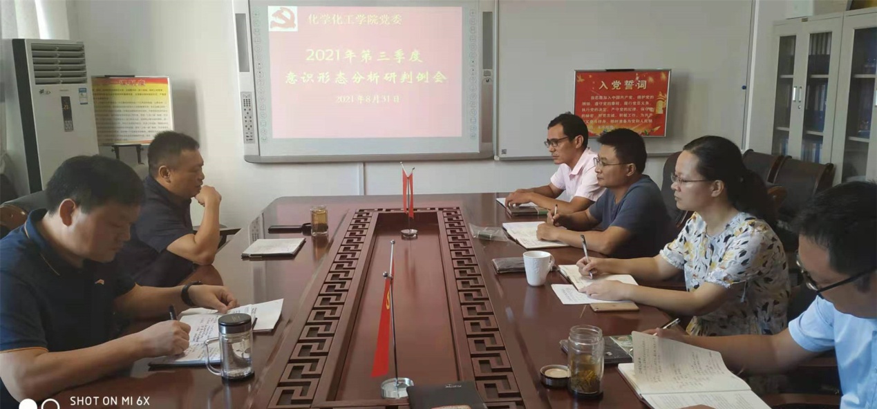 郭鹏再次领学《关于信阳师范学院党委意识形态工作责任制实施细则的通知》《分党委落实意识形态工作责任制考核办法(试行)》等文件,并从意识形态工作总体情况、存在问题和下一步工作打算等方面进行梳理小结,对2021年上半年意识形态工作进行回顾总结,与会人员进行深入细致的讨论,并对学院本年度第3季度意识形态工作重点任务进行分析研判,特别是针对暑假期间师生各领域意识形态工作、安全稳定工作进行了认真分析和研究部署。