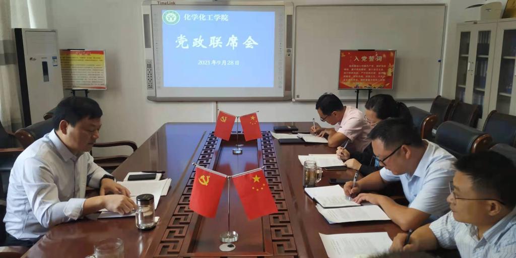 党政班子在化学楼313“党员之家”专题学习2021年中层干部培训暨秋季开学工作会议精神,研讨部署新学期各项工作。学院领导班子郭鹏等全体成员参加了专题学习研讨。研讨会由党委书记郭鹏主持。