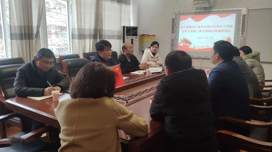 根据《信阳师范学院机关党委各党支部与教学学院党支部、团支部结对共建实施意见(试行)》的安排部署,12月7日下午,机关党委办公室党支部与化学化工学院无机化学教工党支部、2019级化学1班团支部召开结对共建座谈会。机关党委书记朱四倍、副书记徐忠,机关党委办公室王卫杰、范慧珍,成人小说