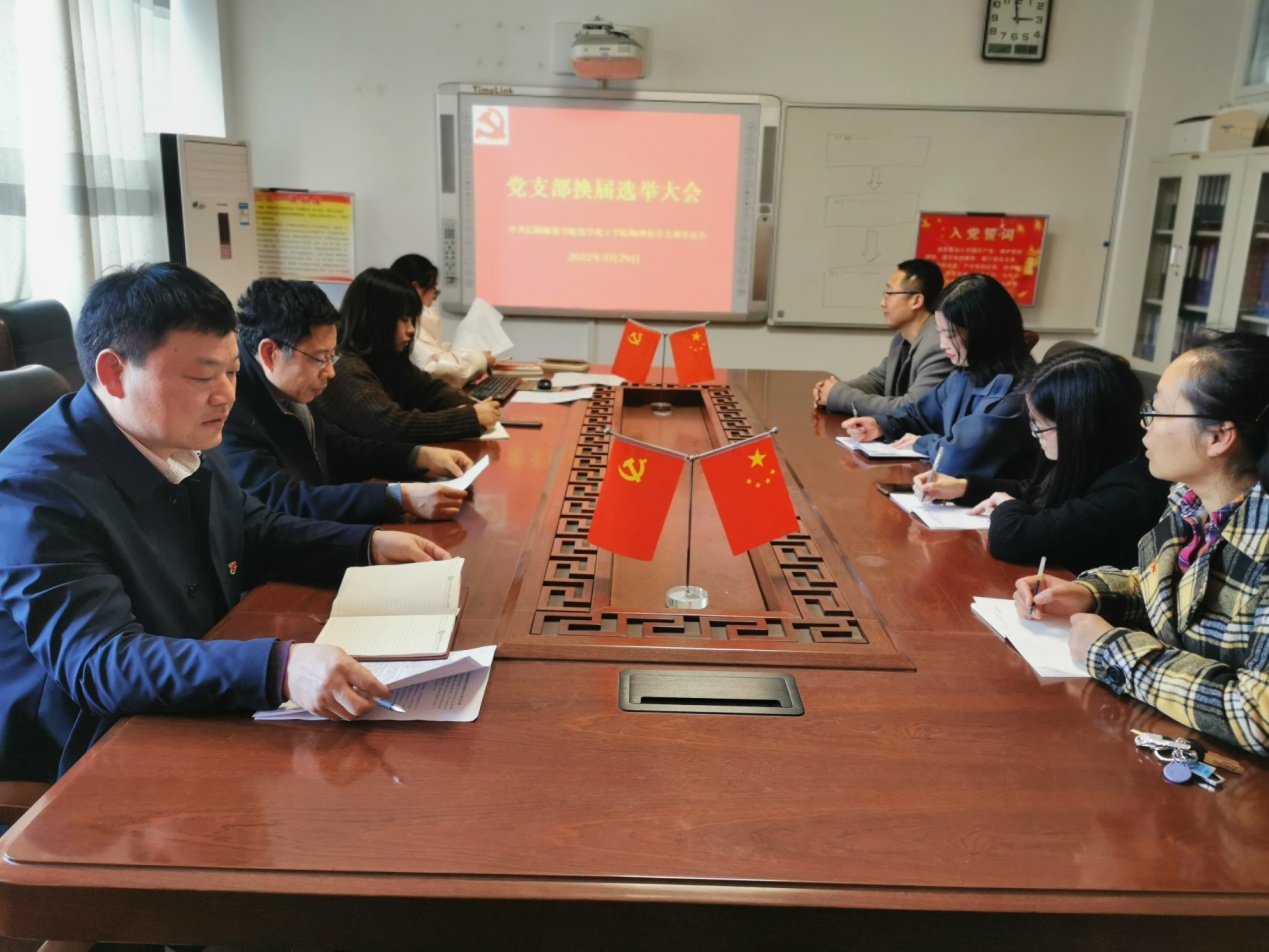 换届工作结束后,院党委书记郭鹏做了发言。他首先肯定了上一届支部的工作。同时,郭鹏结合学校2022“基层党建质量提升年”活动安排,明确希望物理化学党支部以及其他支部全体党员要继续努力,要积极参与“基层党建质量提升年”活动,力争使基层支部党建工作取得明显成效。一是政治建设质量得到新提升。要认真贯彻落实新时代加强党的政治建设的新要求,教育引导支部党员进一步增强“四个意识”、坚定“四个自信”、做到“两个维护”。二是思想建设质量得到新提升。要把“不忘初心、牢记使命”作为加强支部党的建设的永恒课题和全体党员的终身课题常抓不懈。三是组织建设质量得到新提升。要压实基层支部党建主体责任,强化支部党建主业意识,抓实支部书记党建述职评议考核,推动基层党建全面进步全面过硬,防止基层支部组织弱化虚化边缘化。四是队伍建设质量得到新提升。加强基层党支部带头人队伍建设,参加培养培训,选优配强支部带头人。五是党建保障质量得到新提升。加大保障力度,健全激励机制,提升支部带头人干事创业的积极性和主动性。通过基层党建工作“五个方面提升”,不断提高基层党建工作质量,以党建高质量引领事业发展。