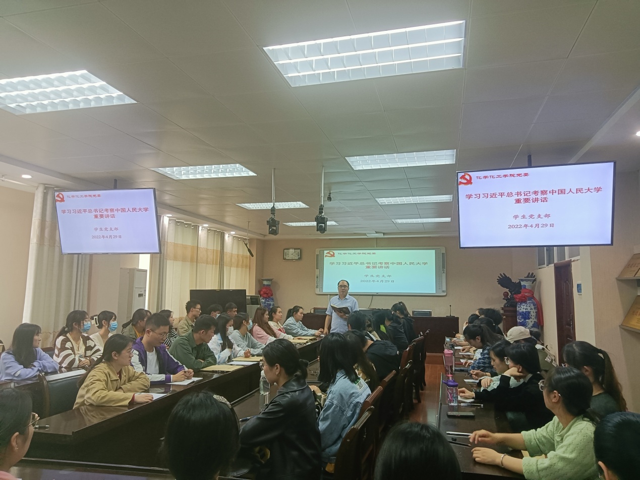 4月29日,成人小说 在实验楼407会议室举行“争做堪当民族复兴重任的时代新人”主题团日活动,深入学习习近平总书记在中国人民大学考察时的重要讲话精神。学院党委委员、专职组织员、学生党支部书记冷向宇和80余名学生党员一起参加学习活动。