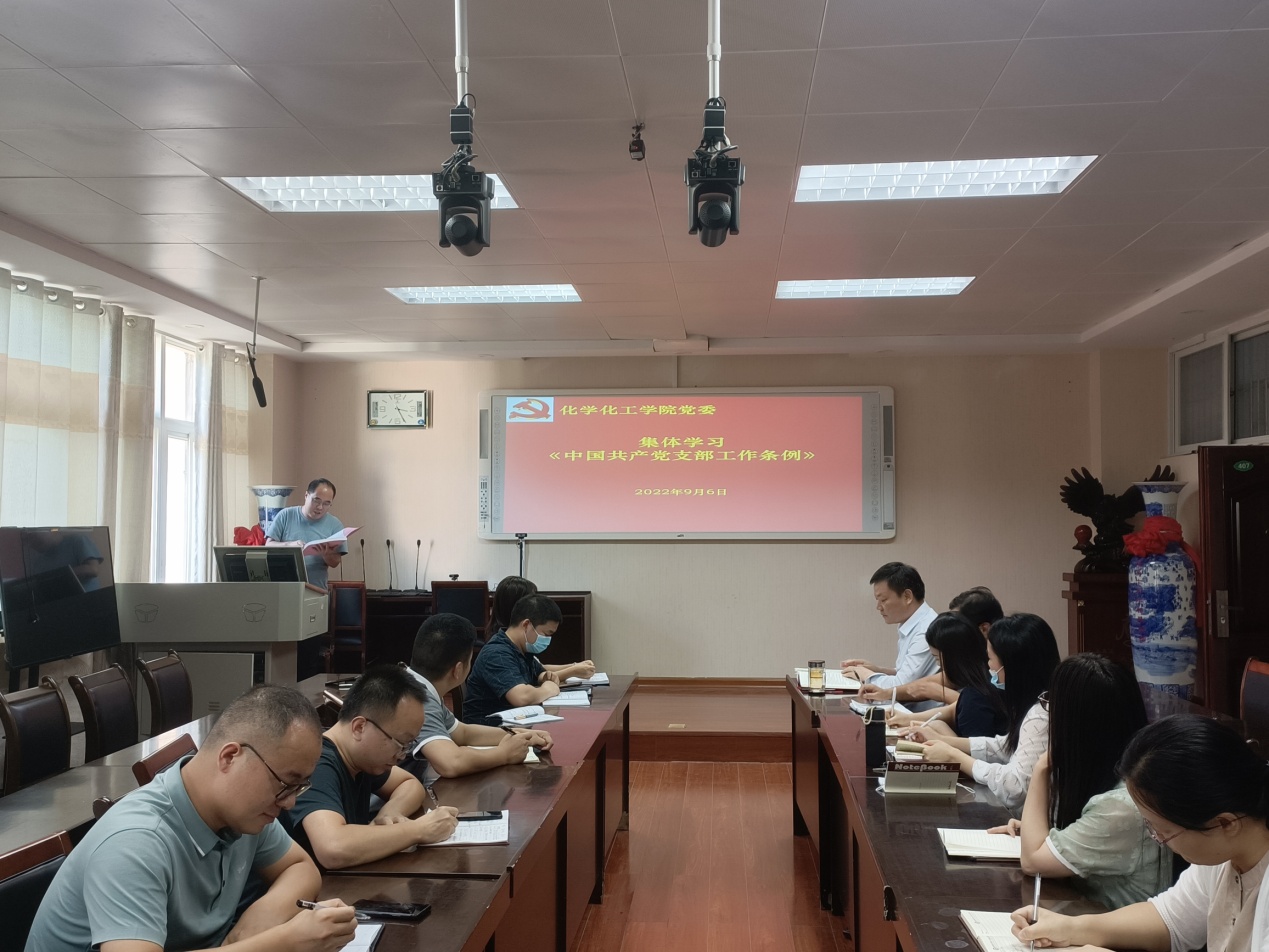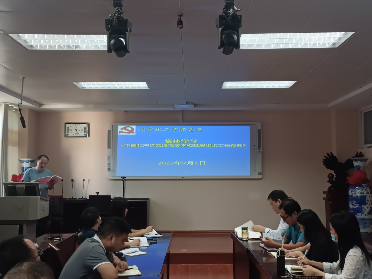 9月6日,成人小说 党组织在化学实验楼会议室集体学习党内法规,党委书记郭鹏、副书记曲剧、副院长曹俊涛、王红军、于永生及党支部书记参加扩大学习会议。学习活动由郭鹏主持。