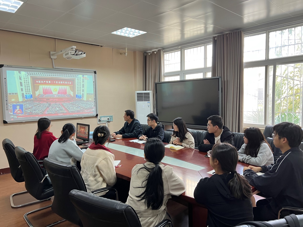2022年10月16日上午10时,中国共产党第二十次全国代表大会开幕。研究生党支部全体党员在化学楼210室收看了党的二十大开幕会直播。