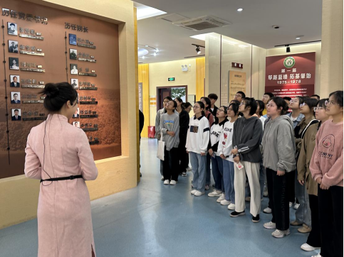 的历史足迹,全方位领略了学校党的建设、师资队伍、学科建设、人才培养、社会服务、校园文化、国际交流合作等方面内容,让大家深切感受到学校的发展既是一部自强不息的奋斗史,也是一部与时俱进的开拓史。最后,参观的全体学生合影留念。