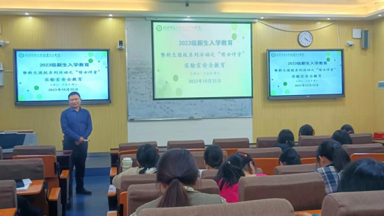 为做好《高等学校实验室消防安全管理规范(JY/T0616-2023)》的宣传贯彻工作,营造良好的消防安全环境,有效提升成人小说 新生消防安全素质和自防自救能力。10月25日,成人小说 在教四楼T2开展2023级新生入学教育暨新生团校系列活动成人小说 副院长于永生主讲,学院团委赵方方老师主持,2023级同学共同参加。