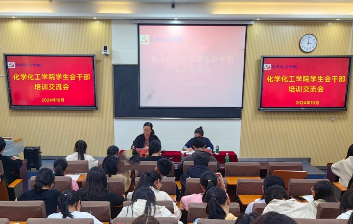 在教四t2召开学生干部培训会,学院党委副书记曲剧、团委书记赵方方、全体学生会成员及2024级各班新生班干部共同参加。