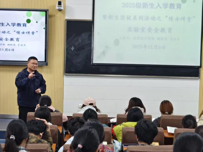2025级新生入学教育暨新生团校系列活动之“博士讲堂”第二讲于11月6日在教四楼T2教室开讲。本次讲座由学院副院长于永生主讲,以实验室安全为核心,为全体2025级新生带来了一堂深刻而实用的专业思想教育课。