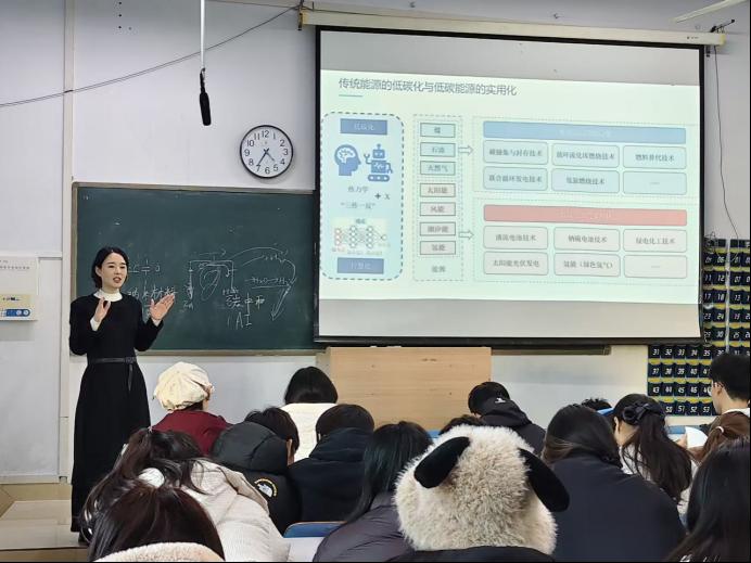 张钰以“化工的低碳智慧化转型:挑战与未来”为题,为同学们带来一场深入浅出的专业思想启蒙。她从国家战略与产业发展的高度切入,紧扣新能源这一时代主题,系统梳理了化工新材料与绿色能源领域的前沿动态与核心问题。她指出,化工新材料是未来化学工业发展的关键方向,伴随新兴产业的蓬勃发展和材料性能的持续突破,行业对高素质专业人才的需求将日益迫切,特别结合绿色可持续发展理念,强调环保型化工新材料已成为产业主流趋势,并鼓励新生主动将个人发展融入国家“双碳”战略和循环经济发展大局。她还细致剖析了应化、化工、材化类专业的广阔就业前景与多元发展方向,为新生规划大学学业、确立未来目标提供了清晰指引。