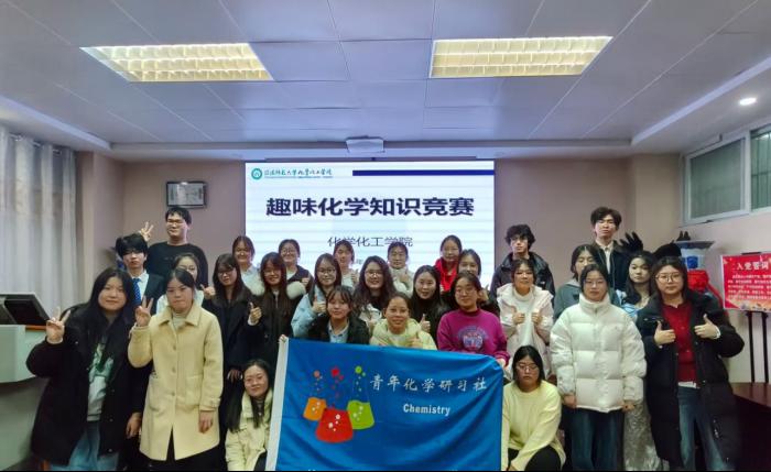 青年化学研习社在化学楼407举办2025年趣味化学知识竞赛决赛。学院党委副书记曲剧、团委书记赵方方、社团指导老师马小红、院学生会主席团成员及2025级学生代表共同出席本次大赛。