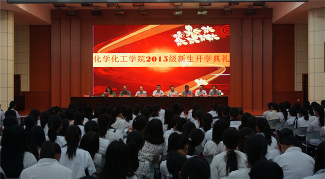 在逸夫楼二楼多功能报告厅隆重举行2015级新生开学典礼。党总支书记周涛、学院其他领导井强山、归风铁、骆定法、杨术明、宋力、刘鹏、黄克靖,教师代表、新生班主任老师和部分高年级学生代表及2015级全体新生参加了此次典礼。典礼由党总支副书记宋力主持。