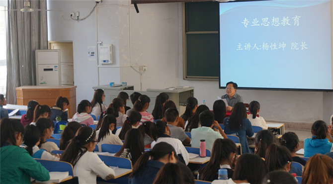 于10月20日下午3点在教四梯一举行2015级专业思想教育讲座。院长杨性坤担任本次讲座主讲人。辅导员李中杰以及140余名学生聆听了此次讲座。