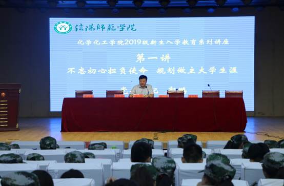 郭鹏作了主题讲座,他以“不忘初心担负使命,规划做主大学生涯”为主题,为2019级新生开讲第一课。他指出,今年是建国70周年,在党的十九大正确的指引下,“两个一百年”引领翻天覆地的变化已标志着中国特色社会主义建设进入了发展新时代。这个新时代,正是党和国家发展的关键时刻,希望青年学生:一要不忘求知初心,勇担使命,做有家国情怀的师院人,读大学修身养性以立德;二要不忘增能初心,刻苦修炼,做勤勉务实的师院人,读大学正心诚意以立业;三要不忘报国初心,博学中外,做有开放视野的师院人,读大学格物致知以立学;四要不忘成才初心,全面发展,做有综合素养的师院人,读大学务实求理以立行。