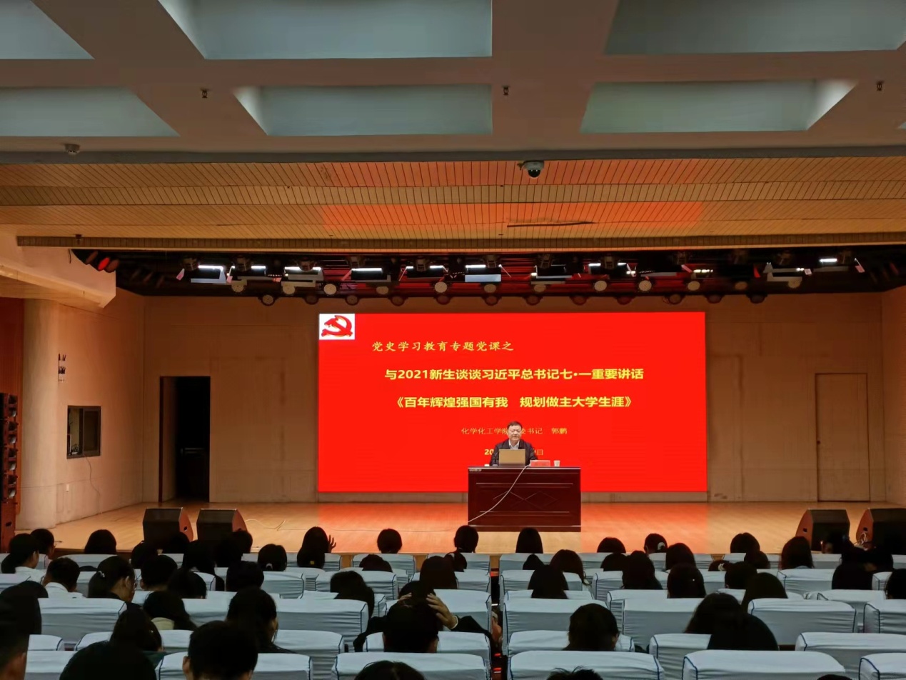 党委书记郭鹏在学院业余党校和新生团校培训班开班仪式上,以《百年辉煌强国有我,规划做主大学生涯》为题,与2021级新生一起分享了《习近平总书记七.一重要讲话》学习体会。