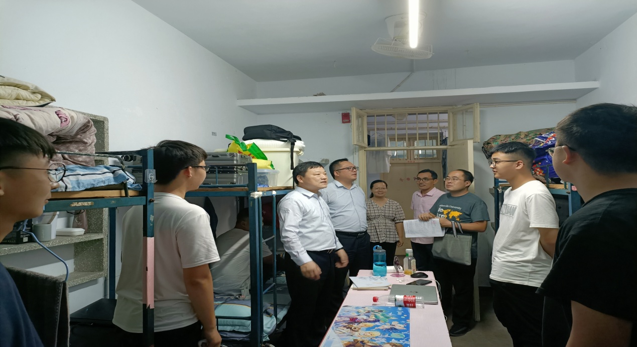 2021级新生都已返校完成报到,学院院领导为了深入了解和掌握新生的思想动态,党委书记郭鹏、副书记曲剧、副院长曹俊涛、王红军等班子成员深入新生宿舍,与学工办、团委的辅导员班主任老师一道前往学生公寓,看望和慰问2021级新生。