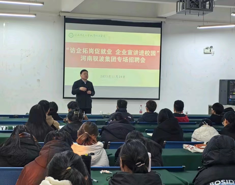 11月24日下午,成人小说 在逸夫楼A座招聘大厅开展“访企拓岗促就业,企业宣讲进校园”河南驭波集团专场招聘会活动。此次招聘会邀请到成人小说 1997届优秀校友、河南驭波集团董事长甄西合,活动由成人小说 院党委书记郭鹏主持,就业工作秘书严赫及应届毕业生参加