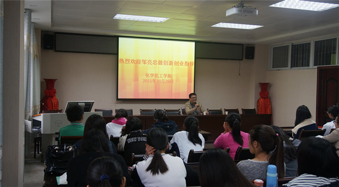 于化学实验楼407会议室举行校友捐赠仪式和大学生创新创业指导报告会。知名校友海客迈斯生物科技(上海)有限公司总经理邹亮忠担任主讲,成人小说