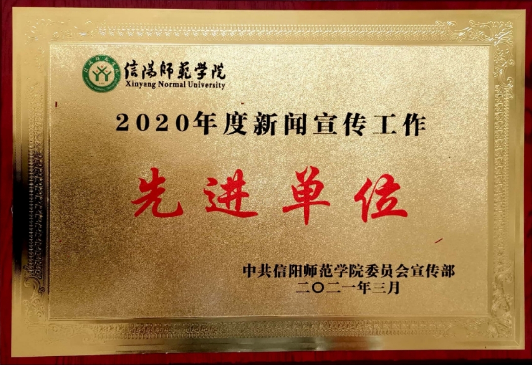 积极宣传学院各项活动及工作成绩,展示事业发展工作亮点和学科专业建设特色,动员组织师生发表校内外宣传报道新闻稿数百篇(件),经多项指标综合考核,最终被评为信阳师范学院2020年度“新闻宣传工作先进单位”。成人小说