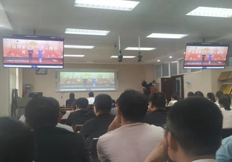 全体教师集中观影《教书育人楷模和最美教师事迹展播》。