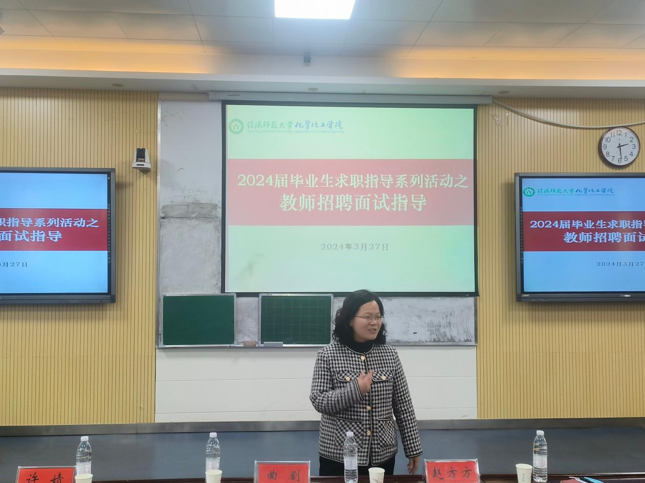 于在教四T2开展2024届毕业生教师招聘面试指导。本次试讲活动由党委副书记曲剧,河南省教育厅教学技能竞赛获奖者刘会俏博士、许婧博士、学院团委赵方方老师进行指导,师范毕业生代表参加本次活动。