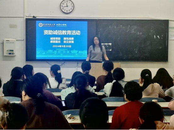 于2024年9月30日开展“诚信受助 感恩励志”宣讲活动。会议由学院资助专干翟成辉老师主持,各班资助委员及受助同学参加。本次活动以“诚信受助,理性消费,感恩励志,自立自强”为主题,旨在提高学生对资助政策的认识和理解,增强学生的感恩意识,培养学生的诚信品质,树立正确的价值观和人生观。