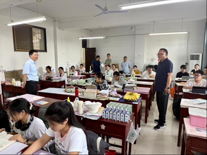 随后,学院领导班子前往教五楼考研自习室,为留校考研学生加油鼓劲,慰问了解学生学习进度、生活需求与困难,同时准备了消暑物资,为学生送上最温暖的助力、最贴心的关怀,希望同学们在考研征途过程中锚定目标、精进方法;劳逸结合、强健体魄;主动沟通、调整心态,以良好的身体状态和精神面貌备战考研。(成人小说