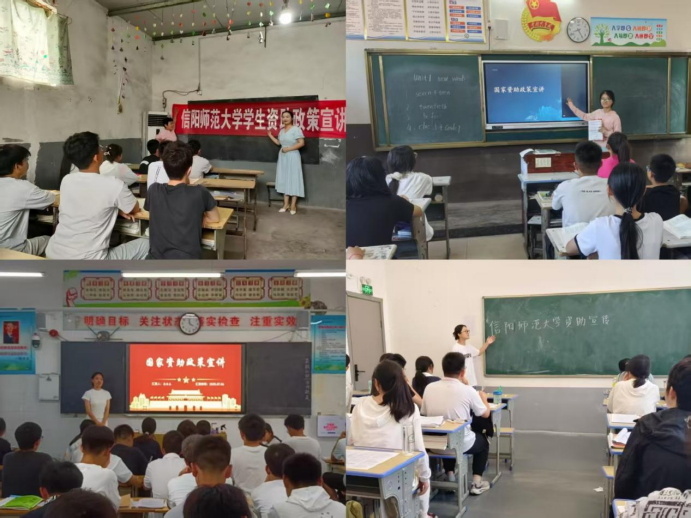 组建的资助政策宣讲团,返回家乡,在开封、安阳、南阳等地分别开展送政策回母校、送政策下乡村活动,他们讲述自己在资助政策的支持下,安心学习、成长成才的励志故事,帮助学弟学妹们缓解了经济上的后顾之忧。对当地家庭经济困难的准大学生进行入户走访,向他们介绍新生“绿色通道”、国家助学贷款、国家奖助学金等国家资助政策及我校的补助措施,其中一位家长激动地说:“我一直担心孩子上大学的费用问题,今天听了志愿者的讲解,心里踏实多了。原来国家有这么好的助学政策,这下孩子的学业有保障了”。