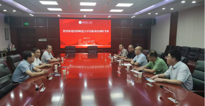 党委书记吴志伟、院长曹俊涛一行来到郑州一中开展访企拓岗活动。郑州一中校长牛建勋,副校长袁全超、张京涛参加座谈会,座谈会由张京涛主持。