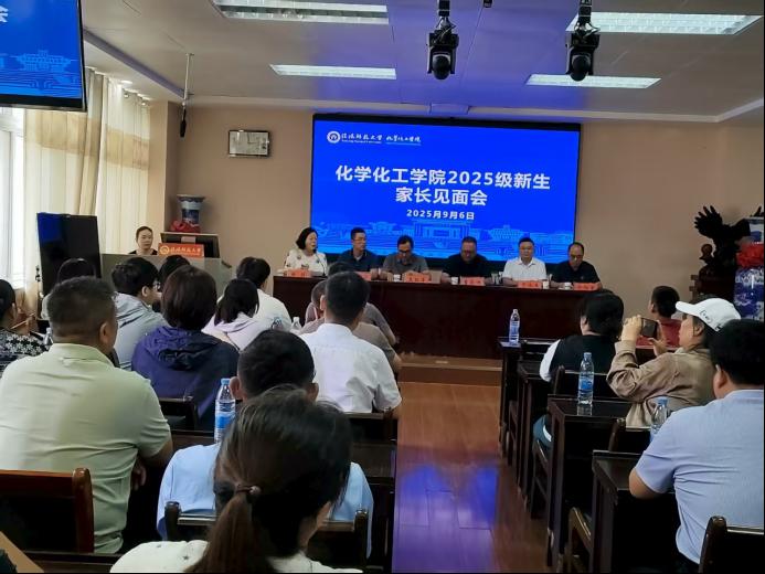 于化学楼407举行2025级新生家长见面会,学院院长曹俊涛,党委副书记曲剧,副院长王红军、于永生,副处级辅导员冷向宇,2025级新生辅导员,部分新生家长参加会议。会议由党委副书记曲剧主持。