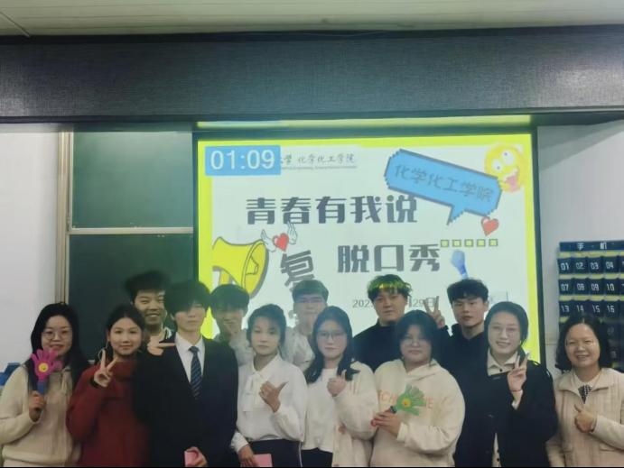 在教四T1举办第二届“青春我来说”脱口秀活动。由学院党委副书记曲剧、辅导员翟成辉和第一届脱口秀校赛获奖学生担任评委,现场还有百余名大众评委参加。