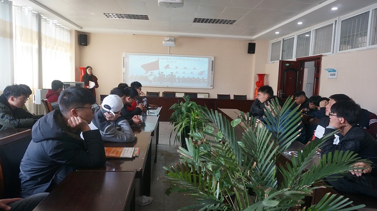 组织在校适龄男生在化学楼407开展了2018年度兵役核验和兵役登记动员会。会上,学院武装干事王丽霞向大家讲解了兵役登记的意义和重要性,现场演示如何进行兵役登记和应征报名,并结合学生登记过程中出现的学信网密码丢失、账号绑定、信息核验等问题逐一进行解答,确保每一名学生顺利的完成兵役登记。