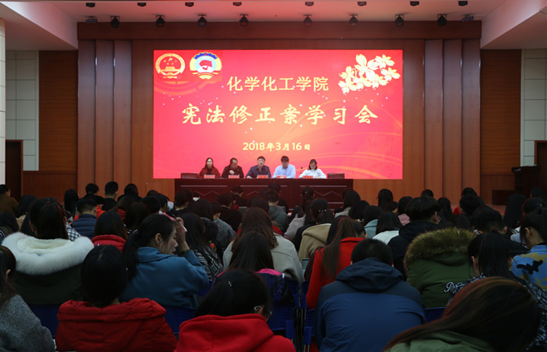 在逸夫楼报告厅举行了《宪法修正案》学习会。党委书记郭鹏、副书记吴志伟、学工办冷向宇、李中杰、王丽霞以及全体学生党员、各班班委、学生会全体成员参加了会议,会议由冷向宇主持。