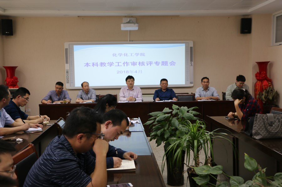 在实验楼407会议室召开本科教学工作审核评估专题会。院长井强山,书记郭鹏,副院长骆定法等领导和教职工参加会议。