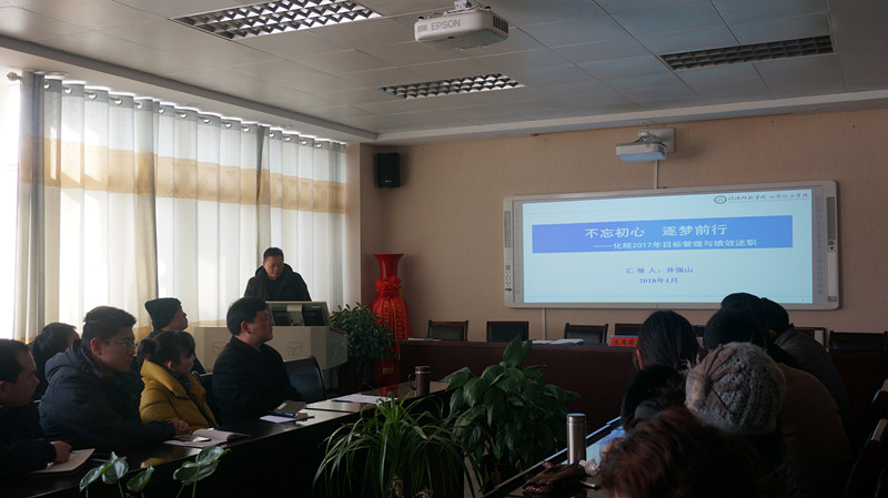 朱国朋传达了校党委关于处级领导班子和处级领导干部综合考核的指导意见,简要介绍了此次考核的程序及办法,强调了综合考核既是全面贯彻落实党的十九大精神,坚持全面从严治党的要求,目的是对2017年度工作进行全面深入总结。他希望各位领导干部的述职发言都能够做到实事求是,客观公正,对工作中的成绩和优点要充分肯定,对存在的问题和不足也要大胆地分析和总结。希望本次述职考评大会能够起到班子成员互相学习、提高工作水平的作用,弘扬主旋律,集聚正能量,推动学院各项工作再上新台阶。