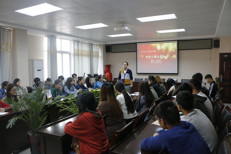10月21日,成人小说 党委秘书冷向宇在化学实验楼407会议室为学生干部上了一次生动的团课,化院九十余名学生干部参加了此次活动。