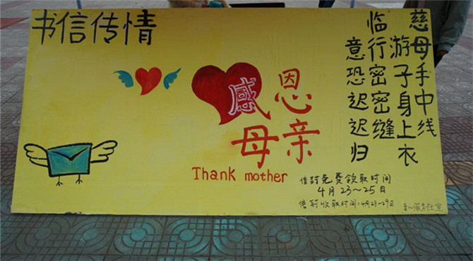 爱心服务社特举行“书信传情,吾爱妈妈”感恩母爱活动。全校学生参与其中,体味爱的光辉。