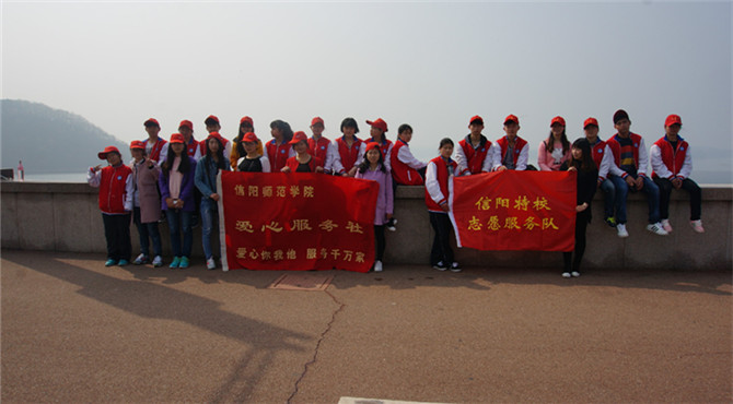 爱心服务社成员先前往信阳市特殊教育学校迎接一群无声的天使,在老师的带领下,他们排列整齐、井然有序。考虑到特殊学生的安全问题,化院学子们通过 “大手牵小手,一对一保护”的方式,携手前往浉河。过马路时,学子们主动走在外侧,并尽力搀扶好自己的保护对象。虽然只能通过简单的手势来进行沟通,但彼此的脸上都洋溢着喜悦。到达浉河后,爱心服务社给大家分发了一次性手套和黑色垃圾袋。他们俩人一组,互相帮助,投入到环保劳动中。他们钻到草丛中用手将绿地中的琐碎纸屑以及小路上废弃的塑料袋、烟头等丢弃到自带的垃圾袋里。不一会儿,原本脏乱的浉河岸边就被清扫的干干净净。这一路上,他们相互搀扶,相互鼓励,在看到浉河焕然一新后都露出了满意的笑容。随后,为增进彼此的感情,他们结伴同游南湾湖,在南湾大坝上留下灿烂的笑颜。离别之时,虽有不舍,但更多的是温情,在初春的三月,化院学子用行动诠释雷锋精神,用真心感受人间温暖。