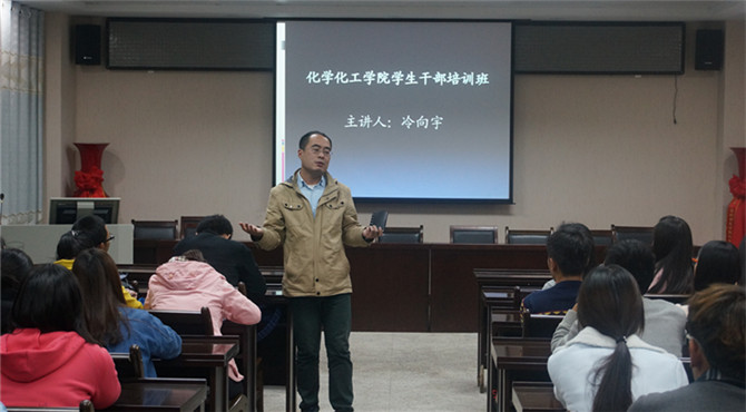 在化学实验楼四楼会议室开展学生干部培训讲座。本次讲座由团总支书记冷向宇担任主讲,团总支老师路振国出席,与化院全体班委共同聆听了此次讲座。