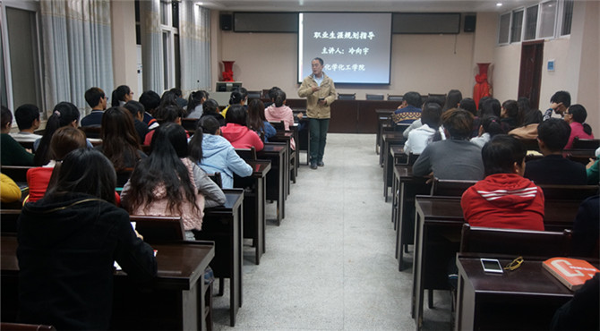 于化学实验楼四楼会议室开展“职业生涯规划指导”讲座。团总支书记冷向宇担任主讲,50余名学生干部聆听了此次讲座。