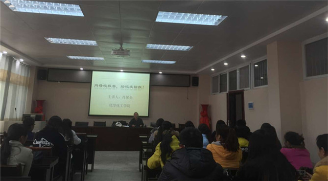 12月4日下午三点,濮阳油田第一中学纪委书记肖保全在化学实验楼407会议室举行专场招聘宣讲,来自化学、生物、地理、数学等专业的50余名毕业生与会,会议由成人小说